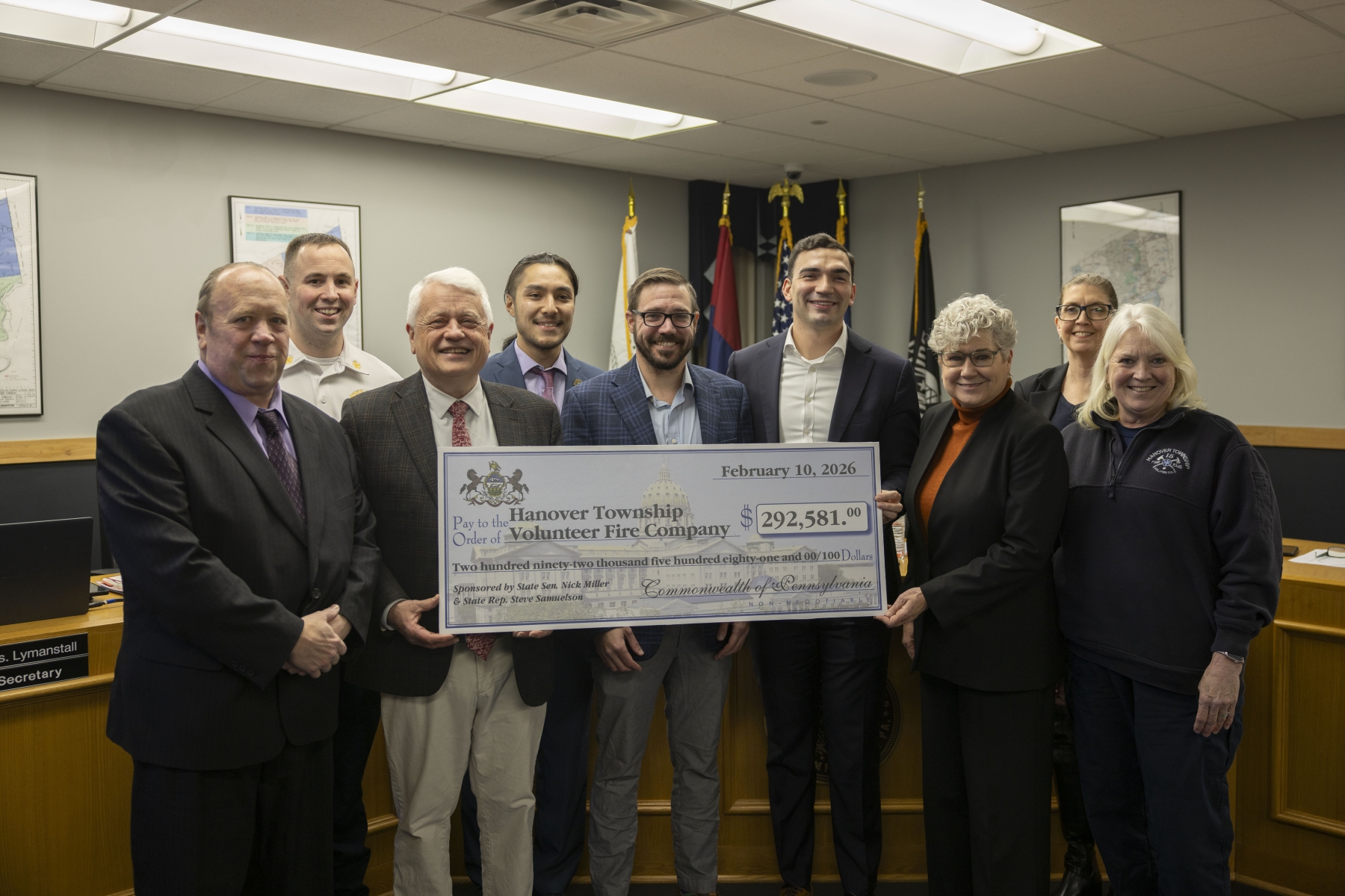 Senator Miller and Representative Samuelson Present More than $290,000 LSA Grant to Hanover Township :: February 10, 2026